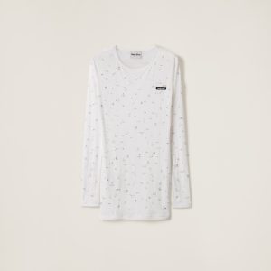 Embroidered ribbed knit jersey dress