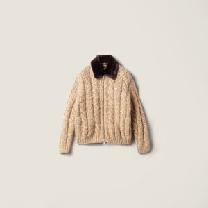 Shearling and knit blouson jacket