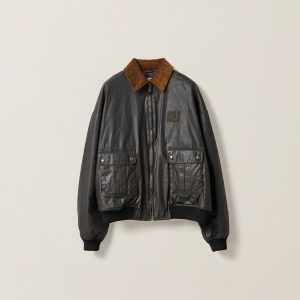 Resin-finish poplin bomber jacket